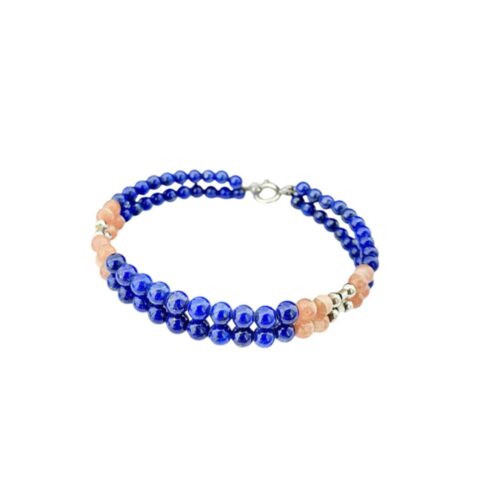 Length: 7 inches (additional lengths available). This bracelet necklace has 17 individual Lapis Lazuli beads and one cultured pearl, each measuring 10 mm.