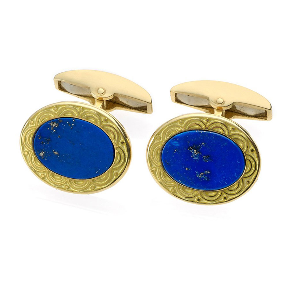 Exquisite Cuff Link Pair, crafted in solid 18K gold crown by two inlaid square Lapis Lazuli stones. Also available in all our stones!