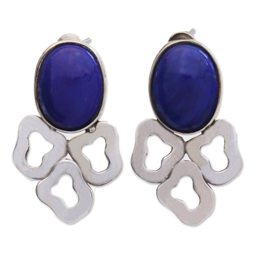 Beautiful piece, handcrafted in 950 Sterling Silver, featuring rare Extra Blue Lapis Lazuli cabochons. Solid Sterling Silver posts.