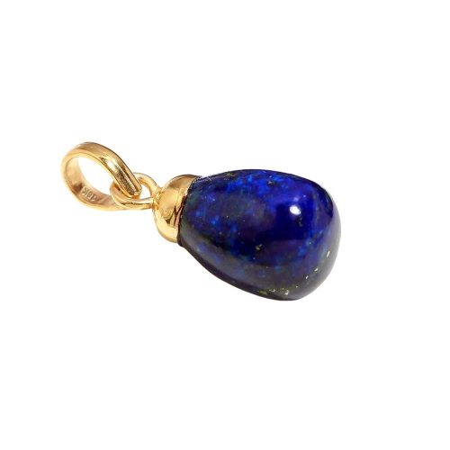 Handcut and hand polished from natural extra Blue Lapis Lazuli, this Donough pendant is simply spectacular because is cut to showcase Lapis Lazuli in all its veined glory. This pendant is available by itself or with a black silk cord with Sterling Silver closures, for an additional fee.